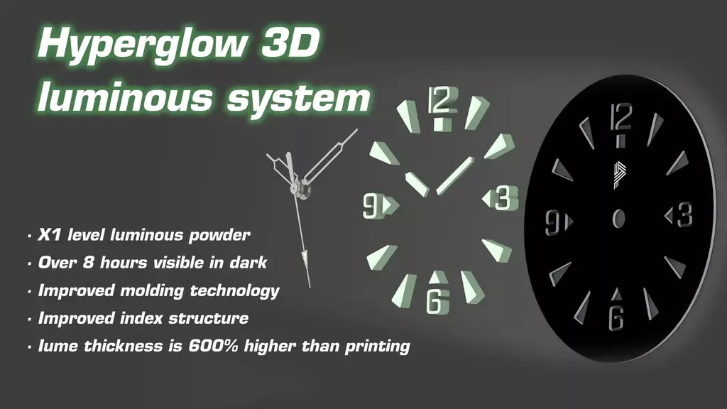 Mostrador: bloco de lume sólido HYPERGLOW 3D (mais de 8 horas visíveis)